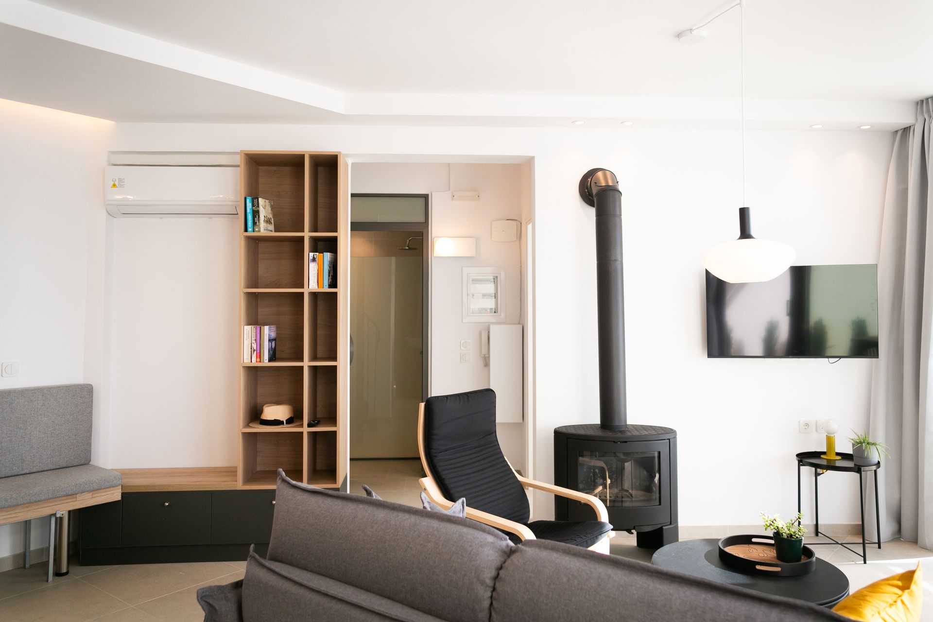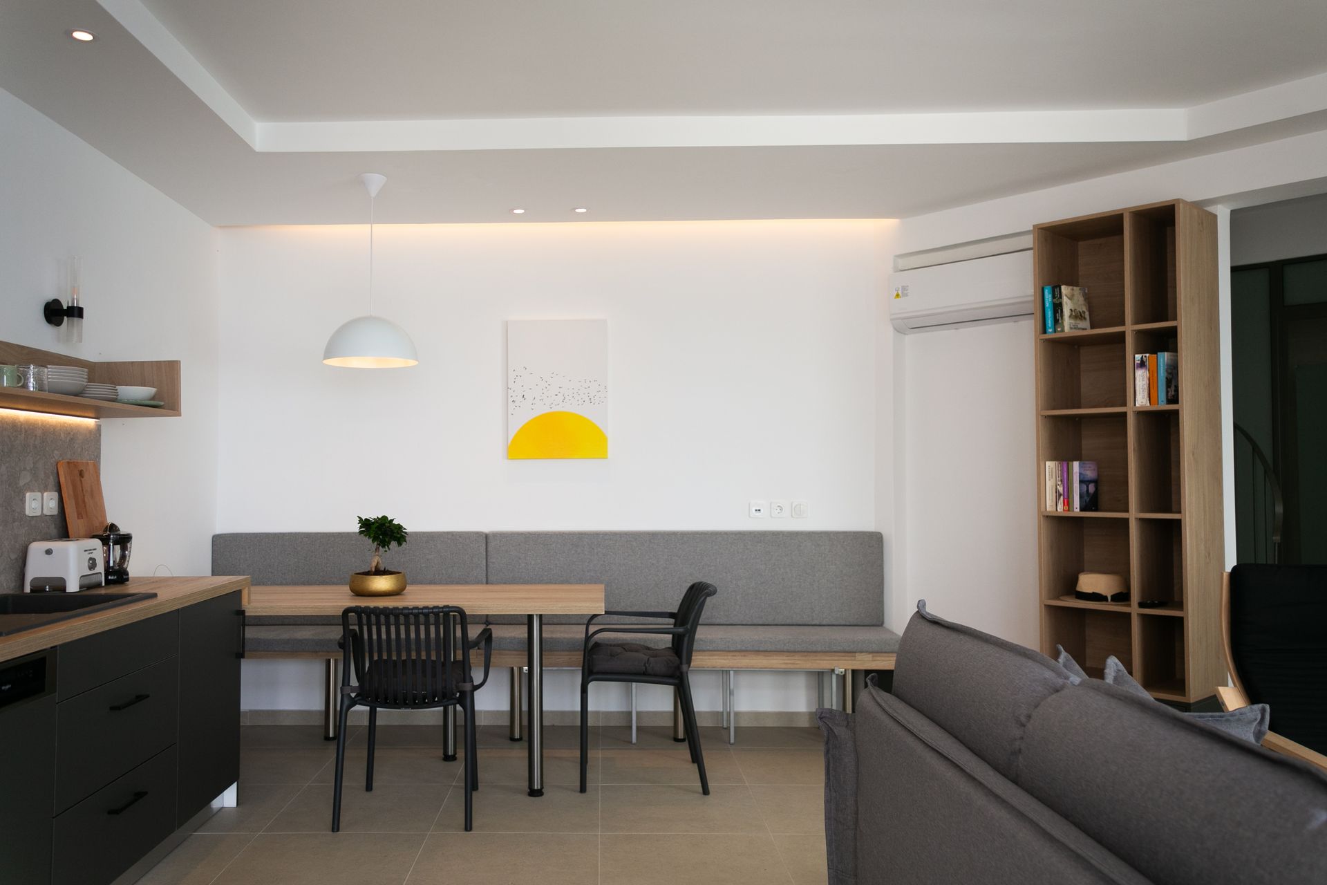 Galaxidi ,a two-level villa, can accommodate up to 7 persons. 2persons in the ground bedroom, 2 persons in the upper bedroom, 2 persons in the sofa-doublebed, 1 kid in the bench-bed.