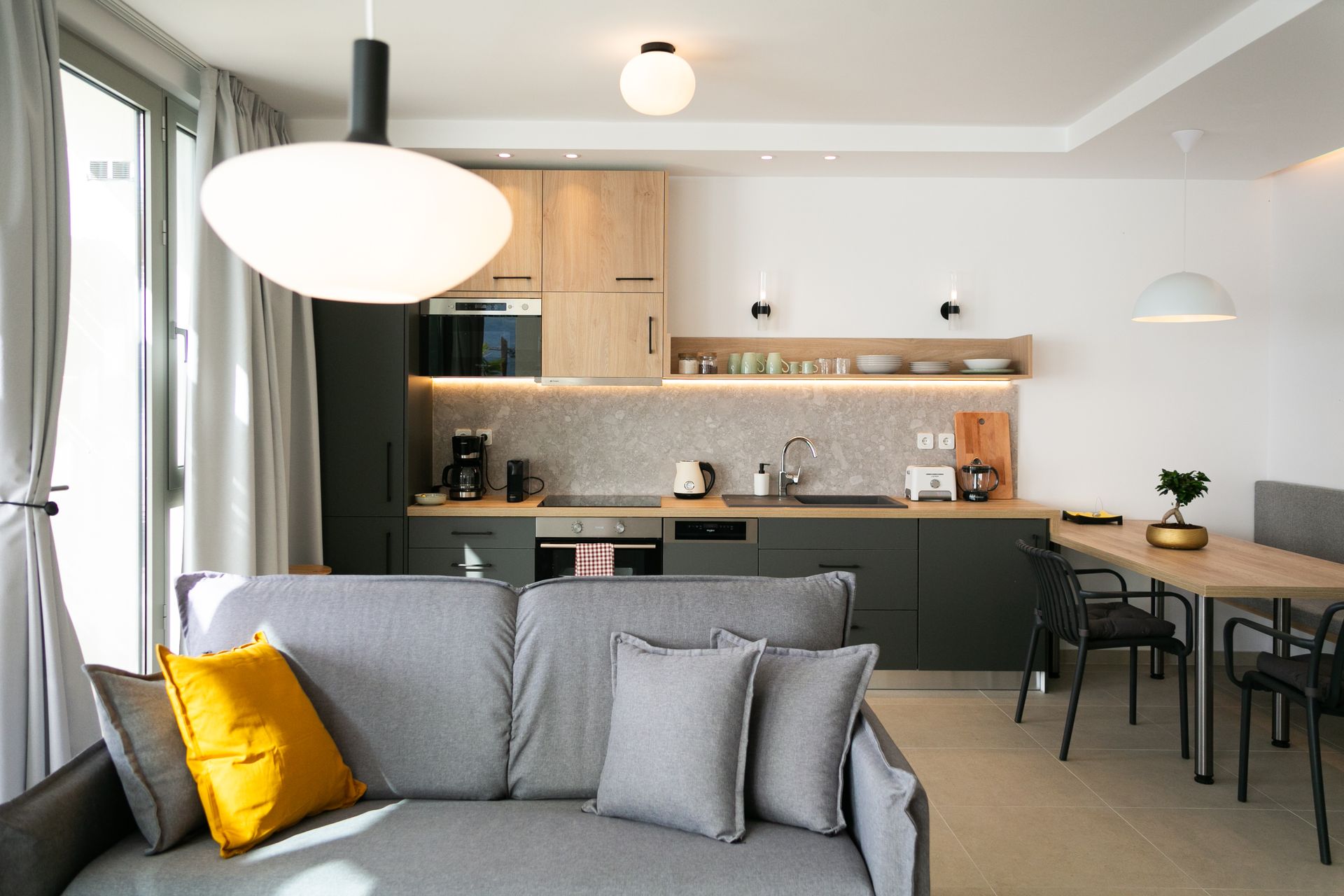- Fully equipped kitchen Kitchen Utensils , (cutlery, glasses, dishes e.tc.) cooking set, pan,pots, micro electric devices, such as toaster, Lemon Orange Squeezer, blender