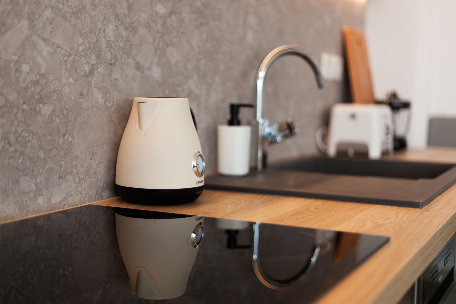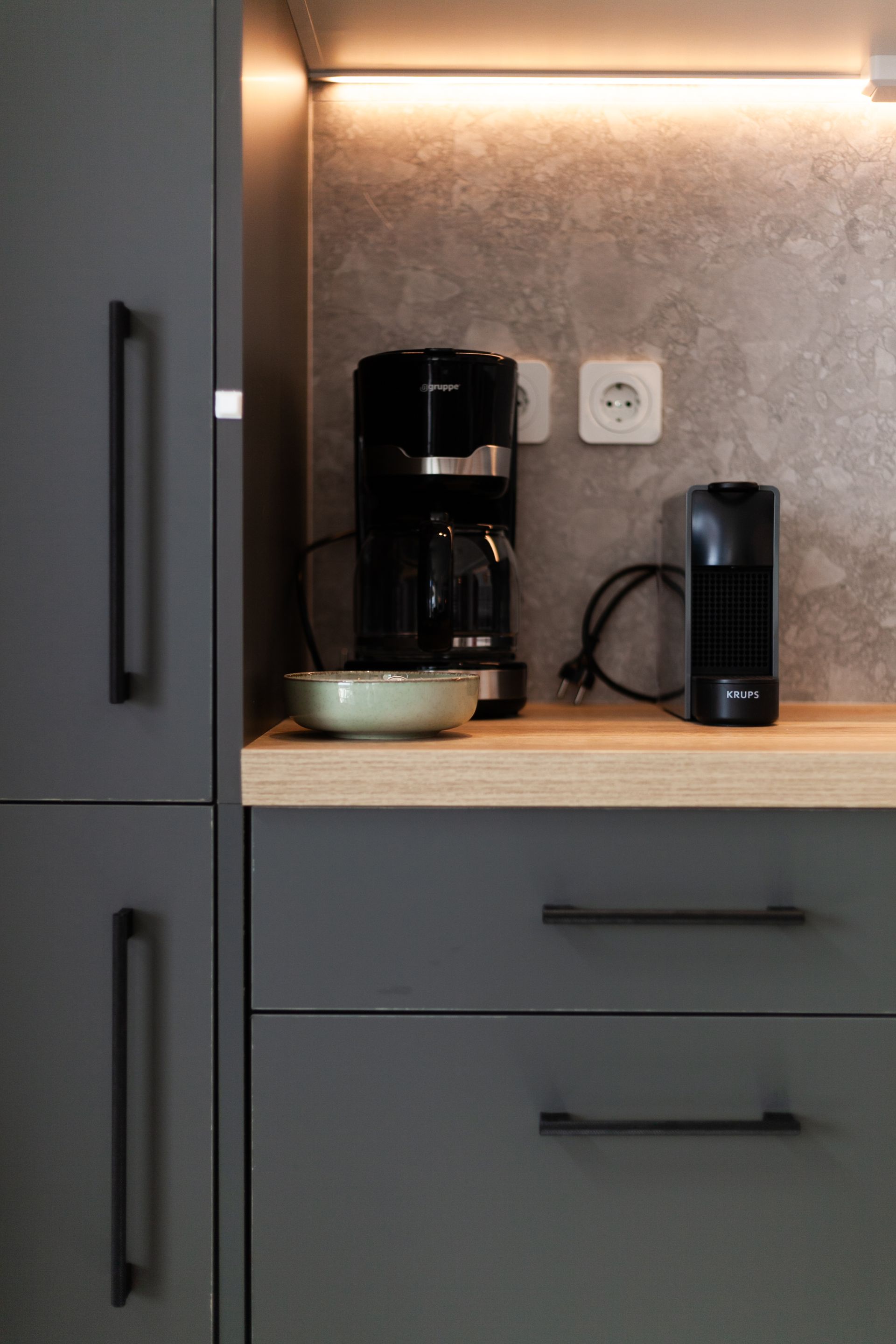 - Coffee machine for filter and espresso coffee, kettle oven, big fridge, dishwasher, washing machine for clothes, microwave