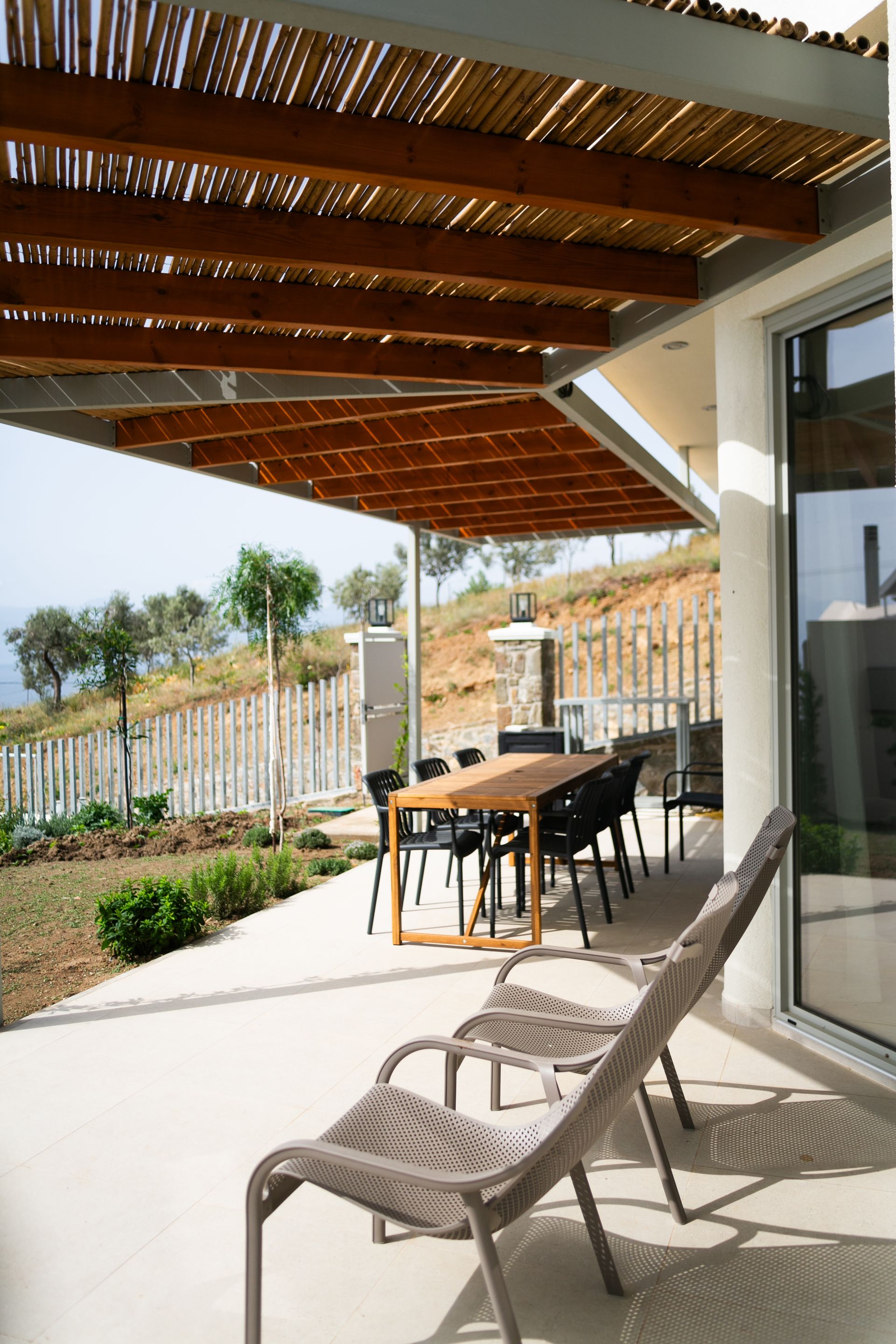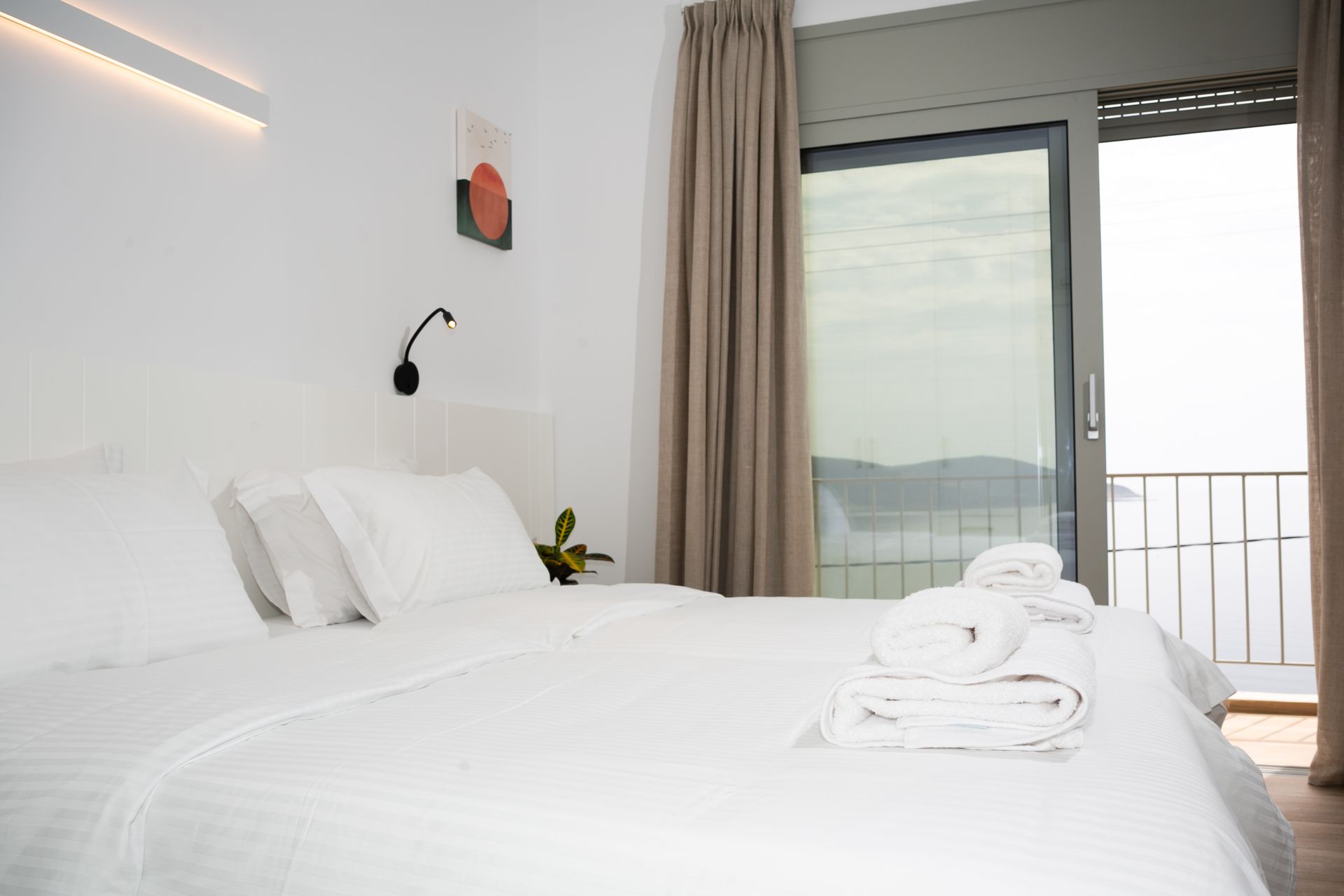 Panormos ,a two-level villa, can accommodate up to 7 persons. 2persons in the ground bedroom, 2 persons in the upper bedroom, 2 persons in the sofa-doublebed, 1 kid in the bench-bed.